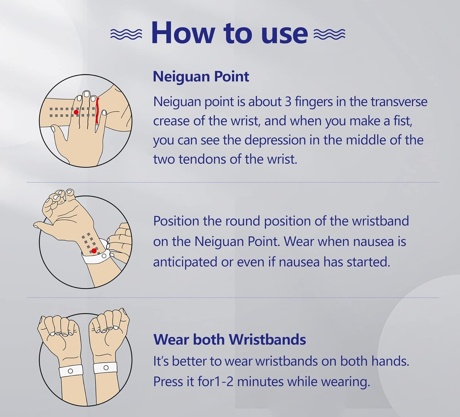 Your body has a natural relief point for nausea - the P6 (Nei-Kuan) acupressure point.